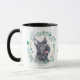 Chaque côté de cette tasse a un beau portrait aquarelle d'un adorable chien écossais Terrier noir dans une couronne de feuille bleue verte. Entre les deux images se trouve le texte qui dit "AIME ma SCOTTIE" en noir. Le texte peut être facilement changé, ou même supprimé, si vous le préférez.