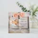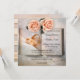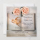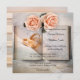 Un faire-part de mariage romantique avec des livres avec des anneaux rose et mariages avec un revêtement de plage de rêve. Beau pour un mariage de bibliothèque ou un mariage avec un thème de livre.