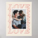 Cette affiche branchée de la Saint-Valentin présente un design typographique audacieux et minimaliste en utilisant le mot "Amour". Un cadre photo avec une bordure blanche est placé au-dessus du lettrage, permettant juste assez de visibilité et de lisibilité du mot.
