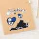 Une feuille de 3 modèles différents d'autocollants, avec carte de Virginie et drapeau d'état. Chaque autocollant est découpé en dés et peut être enlevé séparément, de sorte que vous pouvez les coller sur différents articles. Design 1 : Coeur avec le drapeau de l'état et l'abréviation de l'état. Design 2 : Police par script avec drapeau d'état mélangé dans un coeur. Conception 3 : Plan d'état avec le texte 'appartenance ♥'. Si vous aimez l'état, ceux-ci sont parfaits pour montrer cet amour, en les collant sur votre voiture, ordinateur portable, téléphone, fenêtre ou toute autre surface lisse!