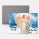 Lovely, vintage picture of an angel with a tree and cardinal, is featured on this rectangle Holiday magnet. With message, "Christmas Blessings To You. New Year Joy Too". A sweet magnet to decorate your home of office with. Makes a great stocking stuffer gift too!
