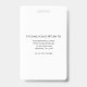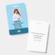 The reverse side includes a clean white background with space for important contact information in case the badge is misplaced, along with an optional barcode area that can be removed if not needed.