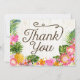 Le thème rustique du luau de la plage avec des fleurs tropicales avec plumeria, hibiscus et carte de remerciements d'ananas.