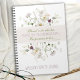 Ce journal de prière personnalisé a des fleurs sauvages verts, or et violet avec le verset de la Bible Luc 1:45 Heureux celui qui a cru que le Seigneur remplirait ses promesses envers elle.