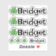 Cute name stickers featuring a lucky clover illustration. One sheet contains three stickers with the name and clover placed together, one sticker with just the name and three isolated shamrock stickers. Personalize with your name to create name labels that you can use to mark your possessions.