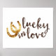 Design présente deux fer à cheval dorés et "Lucky in Love" dans l'aquarelle chaude d'automne brun. Coordonner les accessoires disponibles dans notre boutique !