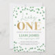 L'invitation d'anniversaire a été conçue pour un premier anniversaire. Parfait pour les petits nés en mars. Fonctionne le texte Lucky One, le reste du texte est modifiable. Quatre trèfles vert feuille mettent l'accent sur l'invitation.