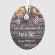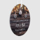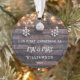 Ornement de Noël rustique avec un arrière - plan en bois, flocons de neige, étoiles primitives et lumières de fées "NOTRE PREMIER NOËL EN TANT QUE MR & MRS. AVEC NOM ET PHOTO SUR LE DOS DE L'ORNEMENT. FAIT UN MERVEILLEUX CADEAU.