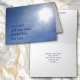 Cette carte de sympathie présente les paroles réconfortantes de l'Apocalypse 21:4 sur le devant et se poursuit sur le dessus intérieur. L'avant de la carte a aussi une belle image photographique du soleil brillant contre un ciel bleu profond. Le message à l'intérieur peut être customisé par vous pour dire ce que vous voulez, ou peut être laissé tel quel.
