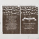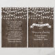 Chaîne de lumières et bannière vintage sur vieux bois été plié style livret mariage cérémonie et programme de fête avec une bannière blanche avec contour marron sur vieux arrière - plan de bois brun. Ce design mariage en bois moderne et tendance, aux éléments vintages, fait partie d'un ensemble ou d'une collection de mariages, est entièrement personnalisable et est parfait pour une nuit d'été en plein air grange western rustique mariage. Notez qu'il n'y a pas de bois réel juste des images imprimées. Vous devrez plier dans le centre pour avoir un programme plié. Choisissez seulement le type de papier de valeur comme il se plie bien.