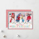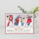 Carte de vœux de Noël tendance et populaire avec trois photos de famille mettant en vedette une guirlande de lumières de Noël avec la phrase "Que vos fêtes soient joyeuses et lumineuses" sur un fond rayé blanc et rouge avec une bordure rouge et bleu turquoise. Le verso de notre carte de Noël photo unique présente un fond rayé rouge et blanc. Jolie carte de Noël avec une guirlande de lumières de sapin de Noël pour mettre en valeur votre belle famille que vos enfants adoreront !