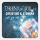 mariage merci autocollants avec bocal de mason plein de petites lumières brillantes - lucioles. Joli autocollant bleu pour vos faveurs de mariage.