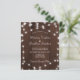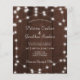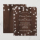 Faire-part de mariage rustique à prix abordable avec des cordes de lumières sur un arrière - plan en bois brun foncé et un script de calligraphie chic, +++++++++++++++++++++++++++ Convient pour l'été, l'automne, ou jardin d'hiver, jardin, extérieur, grange, mariages de ferme.