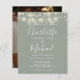 Doté de jolies lampes à cordes et de vos noms de style photo et signature, cet élégant faire-part de mariage vert sauge budget peut être personnalisé avec vos informations en lettrage chic. Conçu par Thisisnotme©