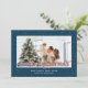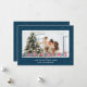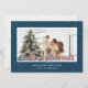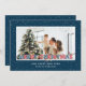 Cartes de Noël personnalisées rouges et bleues avec lumières de Noël, neige tombante et un titre de police de marquee. Personnalisez facilement ces belles cartes de Noël rouges et bleues avec votre image et un nom de famille.