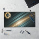 Une fusion dynamique de rayures dorées et turquoises crée un sentiment fascinant de mouvement et d'énergie, rayonnant de chaleur et de profondeur dans un flux abstrait.