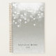 Le planificateur chic avec une épine dorée présente du lettrage noir classique sur un arrière - plan gris argenté orné d'une rafale de lumières de bokeh blanches en haut. Personnalisez avec deux lignes de texte personnalisé, faisant de ce planificateur un choix parfait pour les entreprises, les rendez-vous ou les tâches quotidiennes.