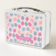 Boite à déjeuner motif en ballon géant et amusant. Les couleurs des ballons sont rose pastel et bleu.