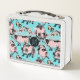 Dessin original de porcs formant un motif extensible avec arrière - plan bleu. Disponible avec arrière - plan transparent pour la couleur de votre choix. Conception sur boîte à lunch blanche avec monogramme dans un rond noir. Correspondance peut refroidir et autres produits... Parfait pour le Nouvel An chinois ou anniversaire (personnes nées dans l'année des cochons). — "Le Cochon (豬) est le douzième et le dernier signe des Branches Terrestres (亥). Dans le cycle Sexagenary continu, chaque douzième année correspond à Hai, et est communément appelé "l'Année du Cochon" (豬 年). Il existe cinq types de cochons, nommés d'après les éléments chinois. Dans l'ordre, ils sont : Métal, Eau, Bois, Feu et Terre. Dans le zodiaque japonais et le zodiaque tibétain, le cochon est remplacé par le sanglier[1]. Dans le zodiaque du Dai, le Cochon est remplacé par l'éléphant. Dans le zodiaque de Gurung, le cochon est remplacé par le cerf. (...) On peut dire que les personnes nées dans ces plages de dates sont nées dans l'"Année du Cochon", tout en portant le signe élémentaire suivant : 10 février 1923 - 29 janvier 1924 = Cochon d'eau, 4 février 1935 - 23 janvier 1936 = Cochon de bois, 22 janvier 19 7 - 9 février 1948 = Cochon de feu, 8 février 1959 - 27 janvier 1960 = Cochon de terre, 27 janvier 1971 - 14 février 1972 = Cochon de métal, 13 février 1983 - 1er février 1984 = Cochon d'eau, 3 1er janvier 1995 - 18 février 1996 = Cochon de bois, 18 février 2007 - 6 février 2008 = Cochon de feu, 5 février 2019 - 24 janvier 2020 = Cochon de terre, 23 janvier 2031 - 10 février 203 2 = Cochon métallique (...)" Wikipedia