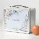 Dusty Blue Aquarelle Fleurs d'ivoire Feuille Boîte à lunch en métal rustique. Unique, beau, design élégant. Facile à personnaliser. Vous pouvez modifier le style de police, la taille et les couleurs. Des éléments correspondants sont disponibles.