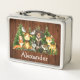 Aquarelle Bois Animaux Boîte à lunch. Bébé Les animaux comprennent l'ours, le cerf, l'orignal, le raton laveur, le lapin lapin, le renard et la chouette avec la végétation forestière. Impression en bois. Ajouter un nom.