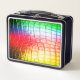 Cette boîte à lunch a des écailles arc-en-ciel sur elle.