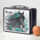 Magnifique cheval noir avec turquoise fleurs boîte à déjeuner, modifier le nom vous-même lorsque vous commandez. Même image à l'avant et à l'arrière.