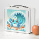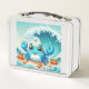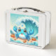 Un joli crabe bleu et ses petits amis heureux, sur la plage avec une vague bleue de l'océan dans l'arrière - plan, imprimé sur les Lunch Boxes. Copyright (c) 2024
