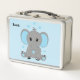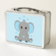 Cette boîte à lunch en métal présente un joli petit éléphant dessiné à la main avec des oreilles bleues sur un arrière - plan bleu pâle. Magnifique cadeau personnalisé pour les enfants ! Il convient pour le retour à l'école, anniversaire, noël et plus encore!