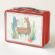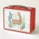 Un doux, aquarelle avec un lama se tenant parmi des cactus. Artiste : Mary urbaine