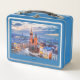 Belle lunchbox bleue avec crépuscule, ville médiévale pittoresque en Pologne.
