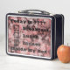 Lunch Box Lunchbox in a classic old school retro black finish with a fun breakfast, lunch or dinner phrase that can be checked off with magnet or dry erase markers and with a background printed with Black Gray Pink White Modern Geometric Abstract graphic design Illustration by TheFabricSeal print on demand shop at Zazzle.com #ZazzleMade ©️Original. https://www.zazzle.com/store/thefabricseal