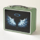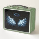 Light, artistique, blue angel wings on a black background. Angel wings.