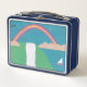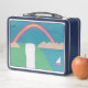 Cette lunchbox bleue est conçue avec ma représentation d'un arc-en-ciel au-dessus d'une cascade.