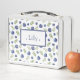 Boîte à lunch pour enfant en métal personnalisé avec bleuets aquarelles. Ajoutez simplement le nom de votre enfant.