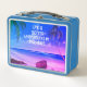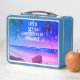 Venez au paradis avec cette boîte à lunch colorée. Ce produit a l'image d'une plage tropicale avec un magnifique sable brun, des palmiers cool, des vagues bleues relaxantes de l'océan et un canoë magnifiquement peint sur le rivage. Utilisez le modèle customisé pour ajouter votre nom ou écrire votre propre message dans cette boîte.