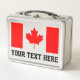 Drapeau canadien vieille boîte à lunch en métal de l'école avec nom personnalisé ou monogramme. Boîte à lunch de style rétro avec drapeau du Canada et texte personnalisé. Idées cadeaux d'anniversaire ou de Noël personnalisées pour les hommes, les femmes et les enfants. Boîte à lunch métallique brillante vintage avec poignée. Cool présent pour le conjoint, l'enseignant de jardin d'enfants, les enfants de l'école, l'étudiant, le travailleur de bureau, le mari, le patron, le collègue, l'ami, l'infirmière, le travailleur de la construction, le personnel, l'employé, les enfants, garçon, fille, petit-fils, père etc. Ajoutez votre propre nom, des initiales monogrammes ou une citation drôle. Drapeau de feuille d'érable. Aussi agréable comme boîte de conservation après mariage ou anniversaire. Ajoutez votre propre photo.