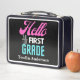 Bonjour Première Année, Retour À L'École Boîte À Déjeuner En Métal. Customisez-le avec votre nom pour un look chic girly unique.