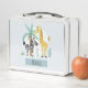 Cette jolie boîte à lunch de garçons bleus présente une girafe et un zèbre, avec un motif animal safari à l'envers (y compris un éléphant, un lion, une girafe, un zèbre, un crocodile et des plantes) et a lieu pour vous d'ajouter votre nom d'enfant dans une belle typographie. Parfait pour votre enfant ou pour le tout-petit retour à l'école. Consultez le reste de notre collection pour d'autres articles pour enfants safari mignons!