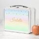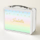Calligraphie de nom doré et étoiles sur couleurs pastel nuances Lunch Box. Le nom peut être personnalisé. Les étoiles nous rappellent de viser les étoiles.