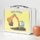 Cette mignonne pelle orange savoure des rochers pour le déjeuner. Rejoignez l'équipe de construction dans un style de dessin animé amusant!