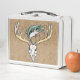 Basse à grande bouche sautant sur un grand crâne de cerf de sapin avec faux motif design arrière - plan. Basse et cerf main tiré par ©Tina Hesskew de Fishing Hunting Life.