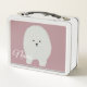 Fluffy Pomeranian Chien personnalisé nom lunchbox. Facile à ajouter une couleur arrière - plan personnalisée.