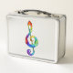 Polygone, arc-en-ciel, clé musicale brillante sur arrière - plan blanc. tatouage en polygone. Clé d'arbre