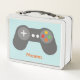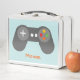 Cette boîte à lunch amusante présente une illustration vectorielle cool d'un contrôleur de jeu vidéo et peut être personnalisée avec le nom de votre enfant, monogramme, initial ou tout texte de votre choix pour un cadeau personnalisé parfait.