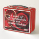 Stylish Inspirational Christian Quote A CORD OF THREE STRANDS Wedding Bible Verse Metal Lunch Box, with CUSTOMIZABLE MONOGRAM. The inspirational quote is based on Ecclesiastes 4:12. The design shows a red rose with golden wedding rings plus white script typography. Add your initials or name at the bottom (or delete). This Christian Metal Lunch Box would make an excellent faith-based gift for Weddings, Anniversaries, Valentine's Day, or 'Just Because' day. Matching gifts available.