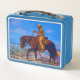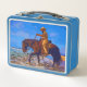 Dessin d'un cow-boy monté et style de peinture, aux couleurs vives.