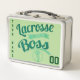 Lacrosse Métal À Déjeuner Tin. Ajoutez votre propre nom et numéro à la boîte à lunch pour faire une grande boîte personnalisée, pour l'école, l'université, le bureau ou les voyages! Il suffit d'utiliser les zones de texte situées à droite de l'image. Conception de script dans les tons verts avec le texte LACROSSE LIKE A BOSS et un bâton de crosse et graphique à billes.