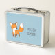 Un mignon petit renard aux oreilles larges se tient debout avec sa queue boisée vers le haut et regarde vers le côté.