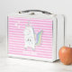 NewParkLane - Boîte à lunch mignonne pour les enfants, avec une licorne sucrée, qui dit : contre un arrière - plan rayé rose doux et chaud, et un modèle texte pour le nom de votre enfant pour un design personnalisé. Un grand cadeau de Stickers Back to School pour toute jeune fille! Qui peut résister à ce doux visage ?